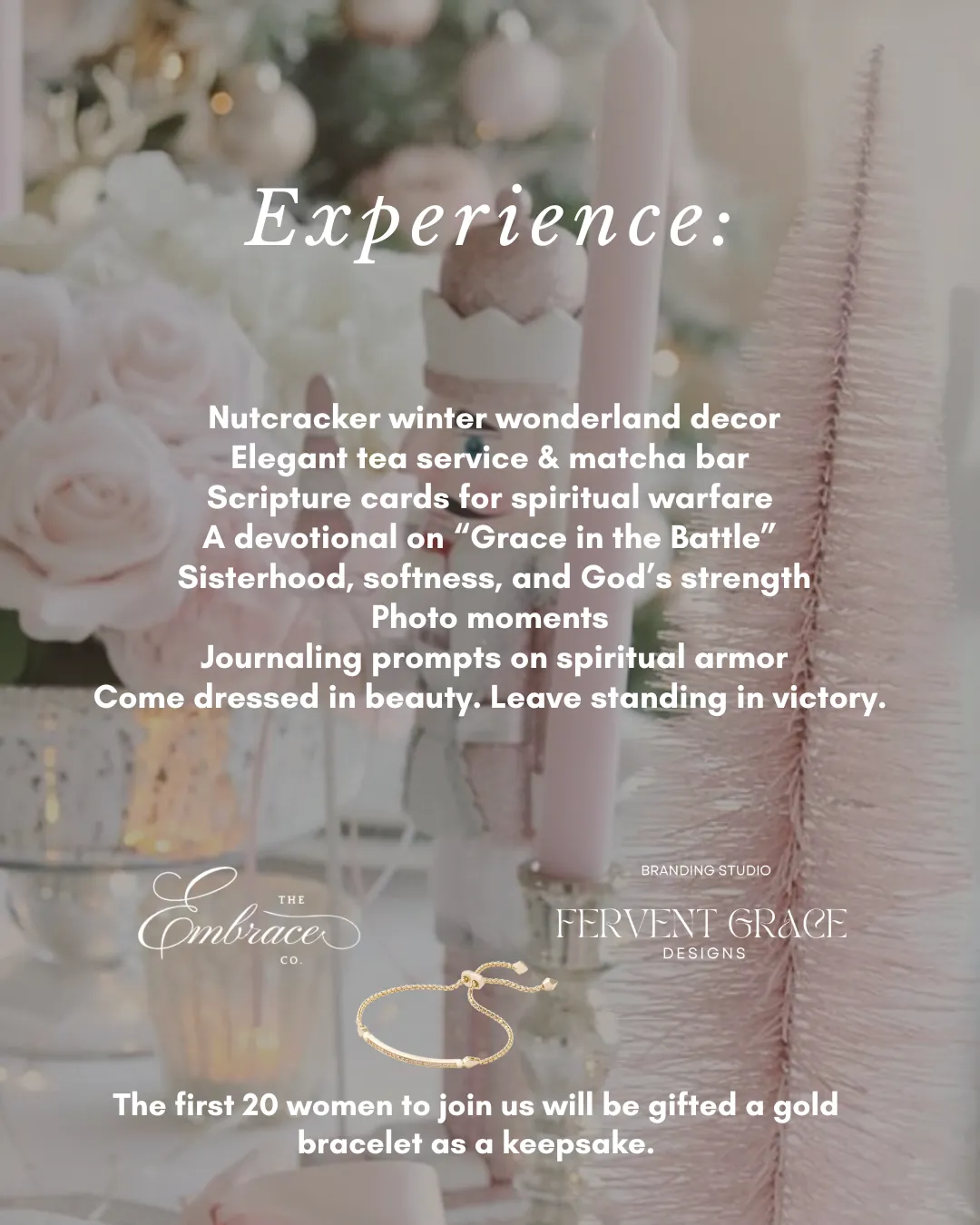 On November 29 join us for a sacred gathering designed to refresh your soul. Imagine soft pink decor, you dressed in white or pink, worship music, tea, and matcha in hand. Real conversations & real connections are waiting for you.