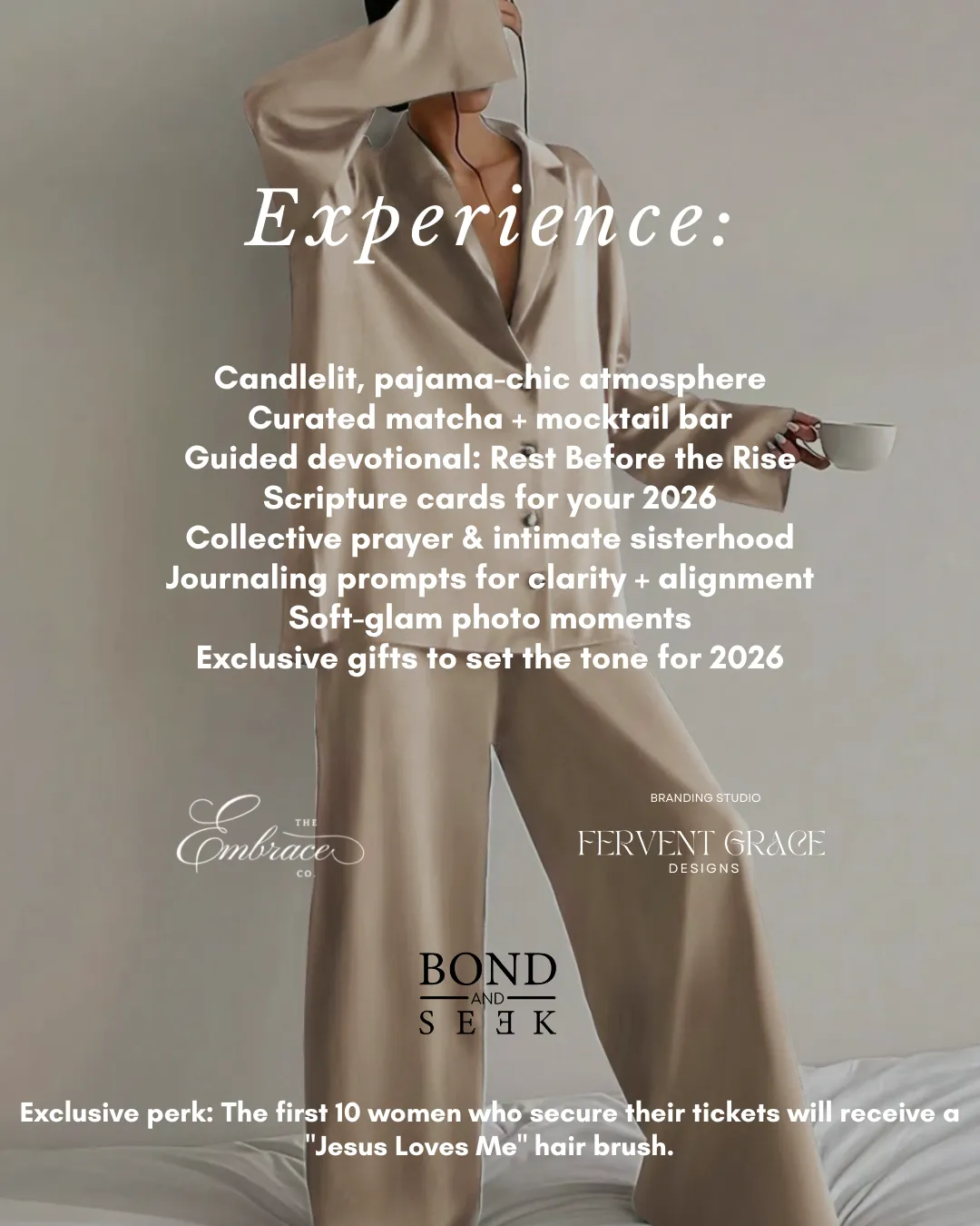 On December 27 join us for a sacred gathering designed to refresh your soul. Imagine elegant decor, you dressed in satin forrest green or ivory, worship music, mocktails, and matcha in hand. Real conversations & real connections are waiting for you.